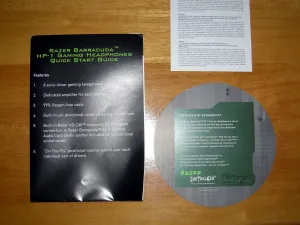 With the Barracuda HP-1 being Razer's first attempt at creating audio products, we were a bit uncertain what to expect when receiving this product. After opening up the packaging we were left with a certificate of authenticity, Barracuda quick start guide, and the actual HP-1 headphones. The design of the packaging allows the headphones to be viewed by opening the front flap on the box, which is secured by Velcro.