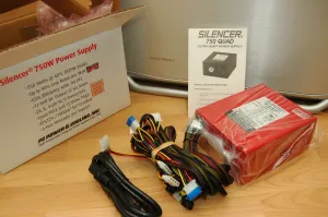 Included with the PC Power & Cooling 750W Silencer was a manual, 14 AWG power cable, and the power supply itself. This is all pretty standard except for the power cable. Most power supplies only come with an 18AWG power cable where as the PC Power & Cooling is 14 AWG. What does this mean? Theoretically it provides lower voltage drop through the cable and less noise due to the lower resistance per 1000 ft. In fact 14AWG (2.5 ohms/1000ft) has less than half of the resistance of the 18AWG (6.3 ohms/1000ft). Now whether or not it makes a difference is debatable. In particular, it has been a hot topic amongst audiophiles.