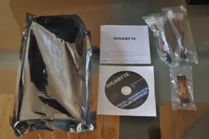Included with the Gigabyte Radeon R9 270X GV-R927XOC-2GD was a simple Gigabyte customer information pamphlet, a Windows AMD GPU driver CD, two 4-pin molex to 6-pin PCI-E power adapters, and one flexible CrossFire bridge.