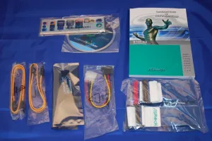 While ASRock's motherboards have improved over the past few years, their packaging remains largely the same. A simple cardboard divider separates the ATX motherboard from the accessories. One of the ways ASRock keeps the cost of their motherboards low is through including a limited number of accessories -- unlike the ASUS, Gigabyte, or MSI motherboards that may include say six Serial ATA cables, ASRock will just include two. Included with the N7AD-SLI was the user's manual, I/O panel, Windows driver CD, two Serial ATA data cables, one SLI bridge, one ribbon IDE cable, one ribbon FDD cable, and one 4-pin molex to SATA power adapter.
