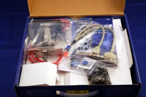 While this is a workstation motherboard, you cannot tell that from the accessories as it ships with most of the same contents you would find on many ASUS enthusiast motherboards. Included with the ASUS P5E64 WS Professional is a quick start guide, Q-Connector Kit, I/O panel, eight Serial ATA data cables, Serial ATA power adapter, one ribbon FDD cable, one G.P. diagnosis card, one ribbon IDE cable, one expansion slot adapter with USB 2.0 and Firewire ports, one expansion slot COM header port, driver CD, and the ASUS user guide. The G.P. diagnosis card is nice, but it would have been ideal if the LED display were integrated directly onto the motherboard PCB itself.