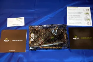 The XFX GeForce GT 220 1GB graphics card arrived in a very small cardboard box that was colorful and advertised the various features and benefits of this low-end desktop graphics card. Included with the PCI Express 2.0 graphics card was an XFX install guide, quick install guide, XFX user-name / password card, and an XFX driver CD. No Linux drivers or any Linux software for that matter is to be found on the driver CD. This graphics card is backed by a limited lifetime warranty.