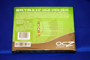 The OCZ Agility 120GB arrived in a smaller container than the Vertex SSD but was still sized appropriately for a 2.5" SSD. The OCZ packaging made mention of the faster SATA 2.0 access times, the slim design, low power consumption, shock resistant, and RAID support. The Agility SSD included an installation guide and then arriving in a smaller box was the 2.5" SSD encased within an anti-static bag with a cardboard cutout precisely for a snug fit. OCZ backs these SSDs with a two-year warranty.