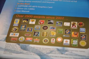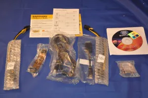 Included with the Sapphire Radeon HD 6870 Vapor-X graphics card was a Sapphire sticker, an AMD CrossFire bridge, the normal user's manual and CD, a VGA D-Sub to DVI dongle, an HDMI to DisplayPort dongle, an HDMI cable, and two 4-pin molex to 6-pin PCI Express power adapters. Sapphire does not advertise any Linux support on their product packaging, but they do at least show off the Phoronix award logo from previous favorable Sapphire products we have tested.