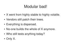 Yesterday Luc Verhaegen gave a talk at FOSDEM on reverse engineering a motherboard BIOS, but today we finally have [email protected] for the last time. Luc has just begun his talk on unifying and simplifying the free software desktop's graphics driver stack. Here are his slides and we will be back with more updates and videos on Phoronix as the presentation progresses.